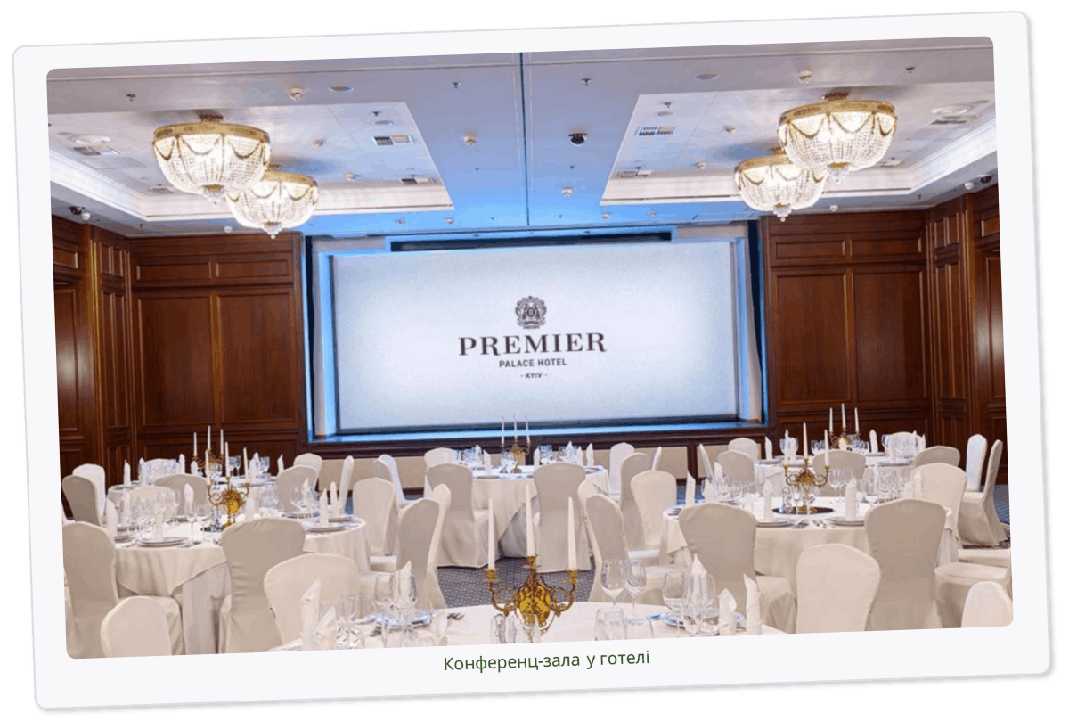 Велика урочиста зала знаходиться на -2 поверсі готелю в укритті